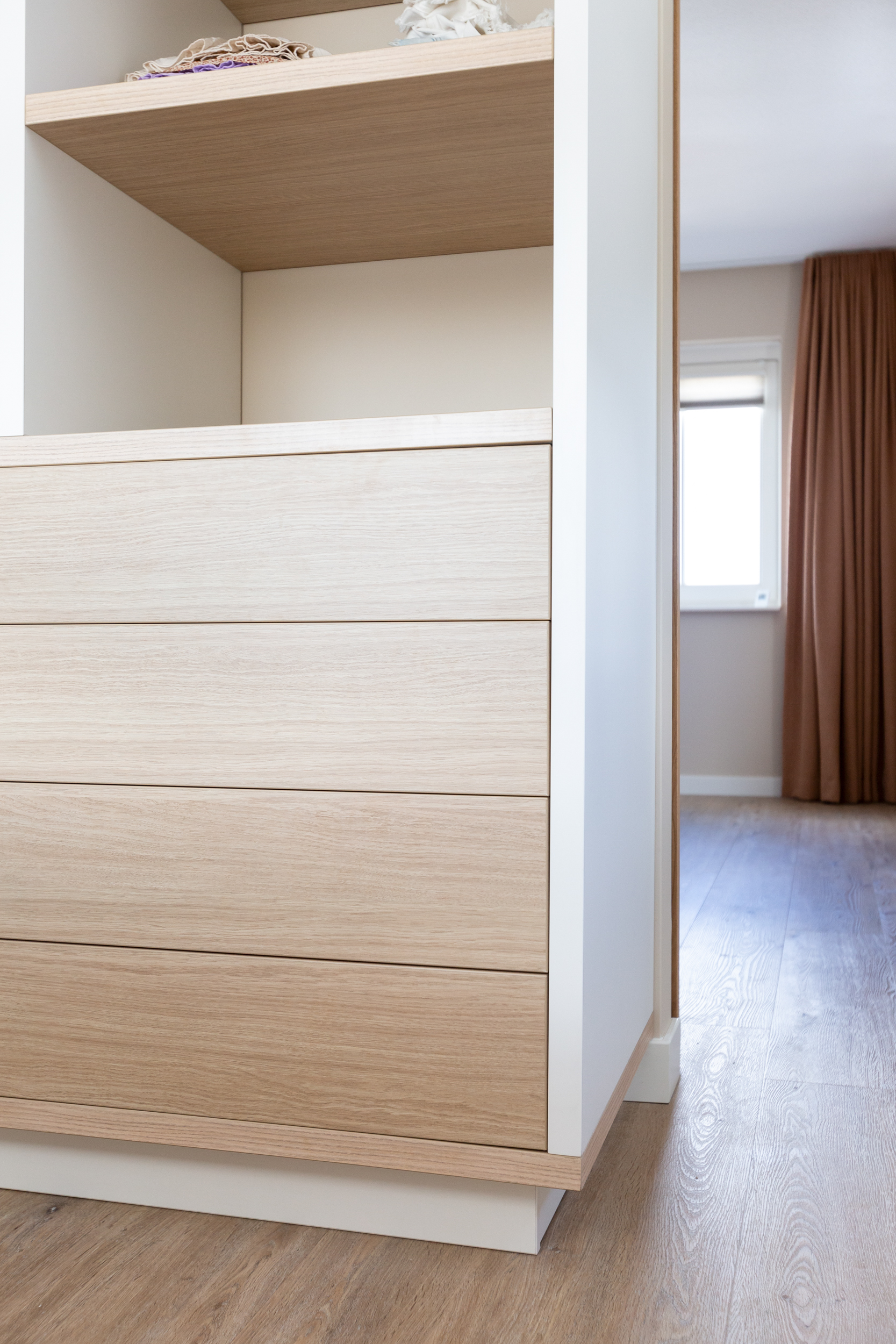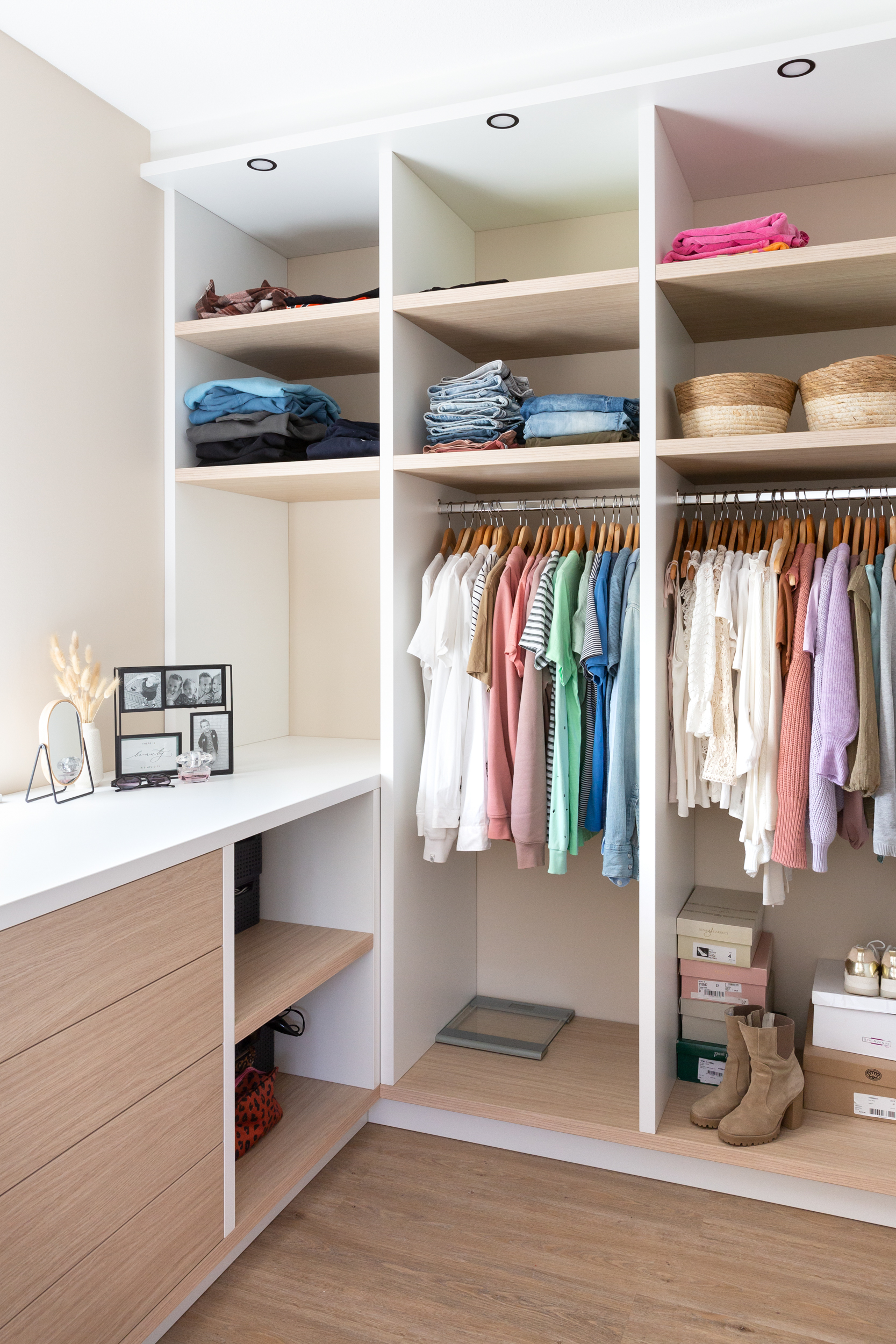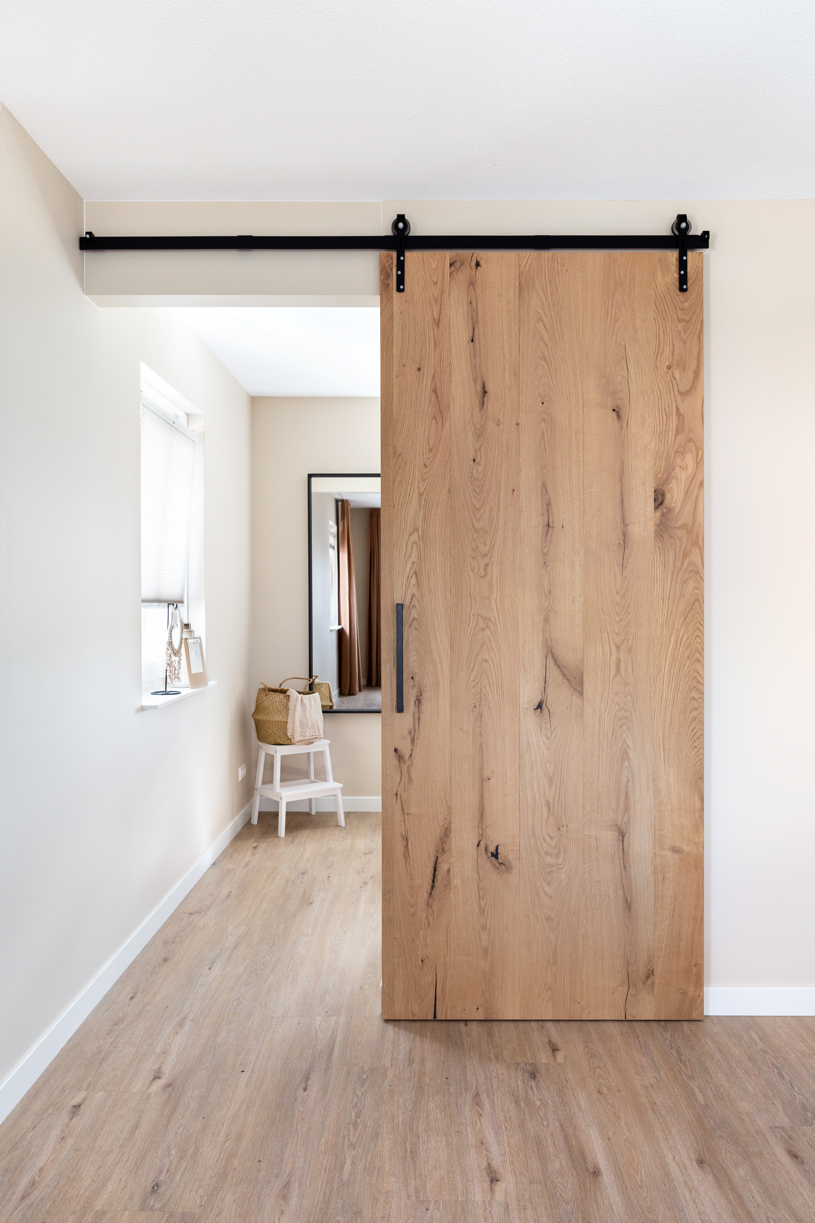 Een op maat gemaakte inloopkast, af te sluiten met een maatwerk barndoor