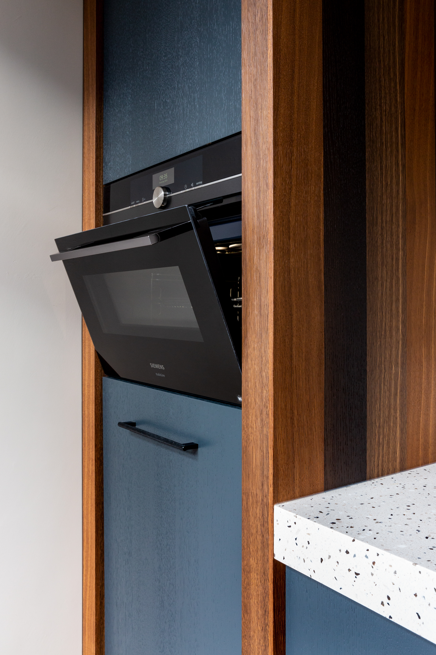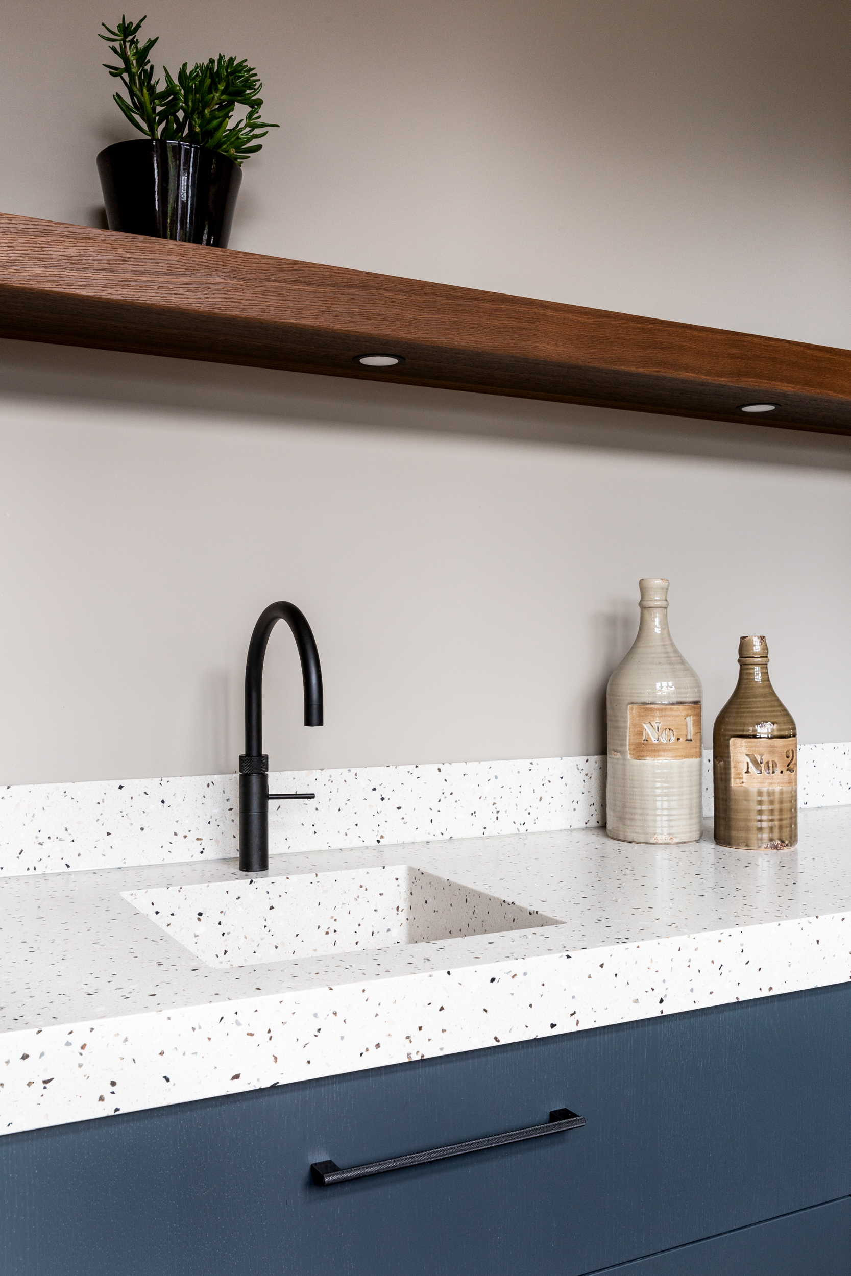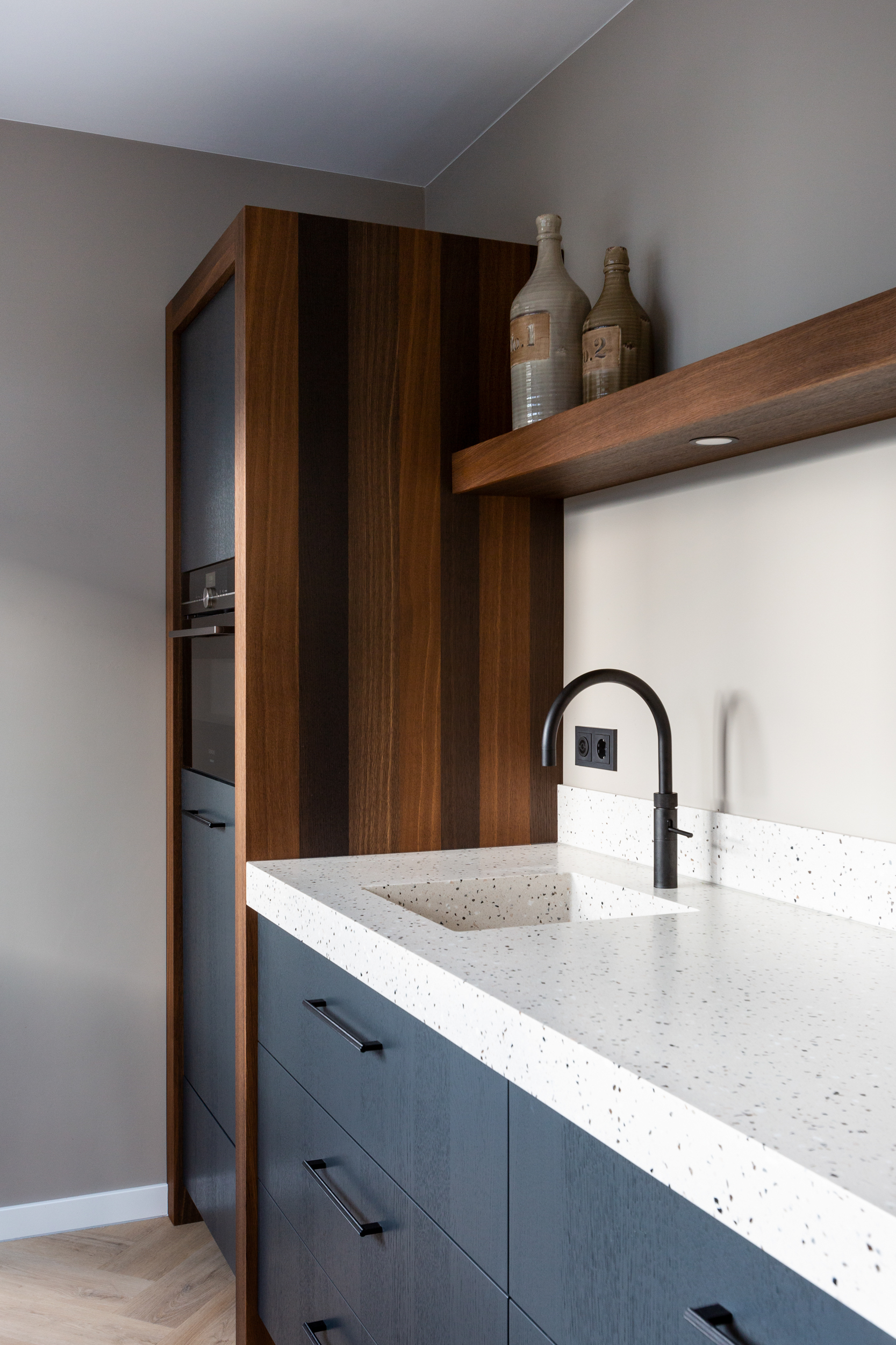 Het terrazzo blad is van LG-Himacs